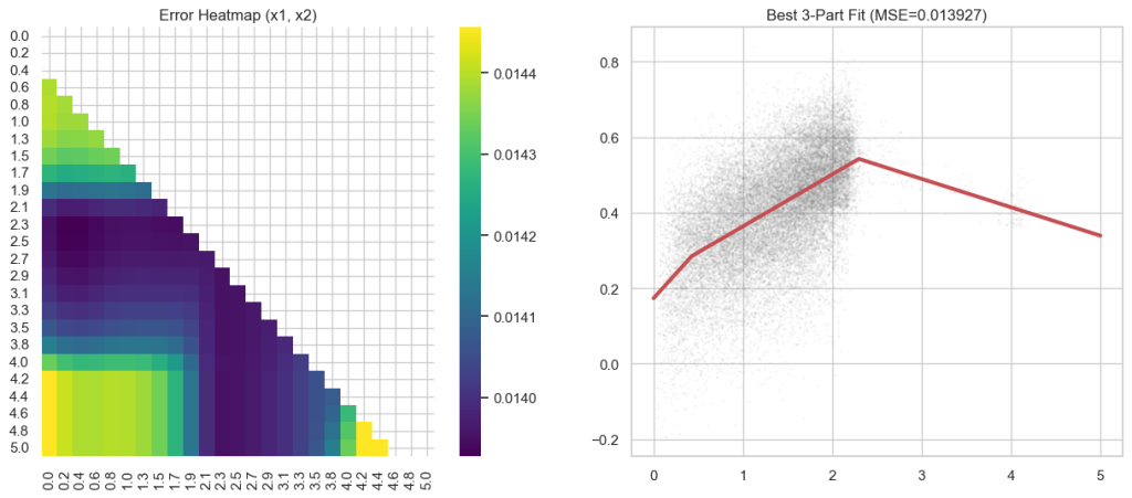 I did some manually tweaking to this to ensure that the normalization function was always increasing. I’ve also updated the score breakdown in the dashboard to reflect the weights. Now you can see the total IDF. If you add up the subscores, and divide by the total IDF, you get the total subscore before normalization by the piecewise-linear function above.
