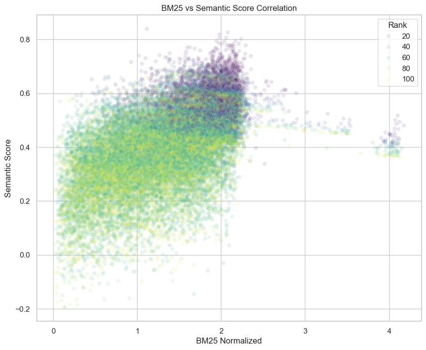 After dividing the BM25 by this weight, I had to recalculate my piecewise-linear scaling to align BM25 and the semantic scores.